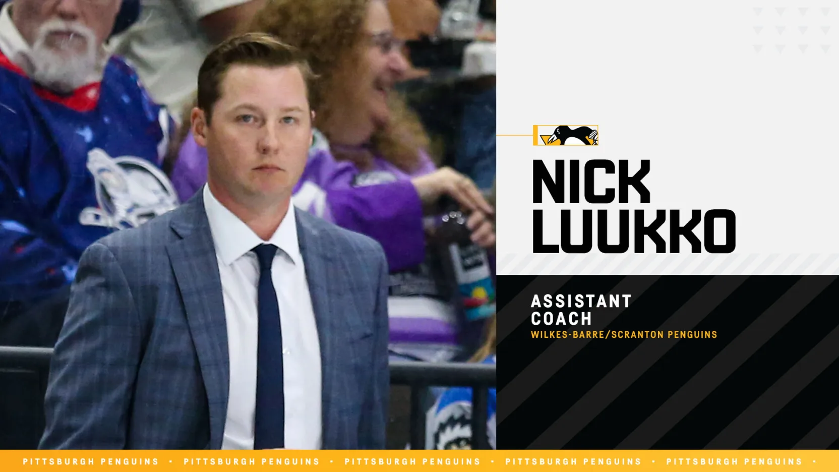 Nick Luukko has been named assistant coach of the Wilkes-Barre/Scranton Penguins of the American Hockey League, it was announced today by Penguins President of Hockey Operations and General Manager Kyle Dubas.Additionally, Matt Mitchell has been named Head Equipment Manager and Zander Kosmala has been promoted to Head Athletic Therapist of WBS.