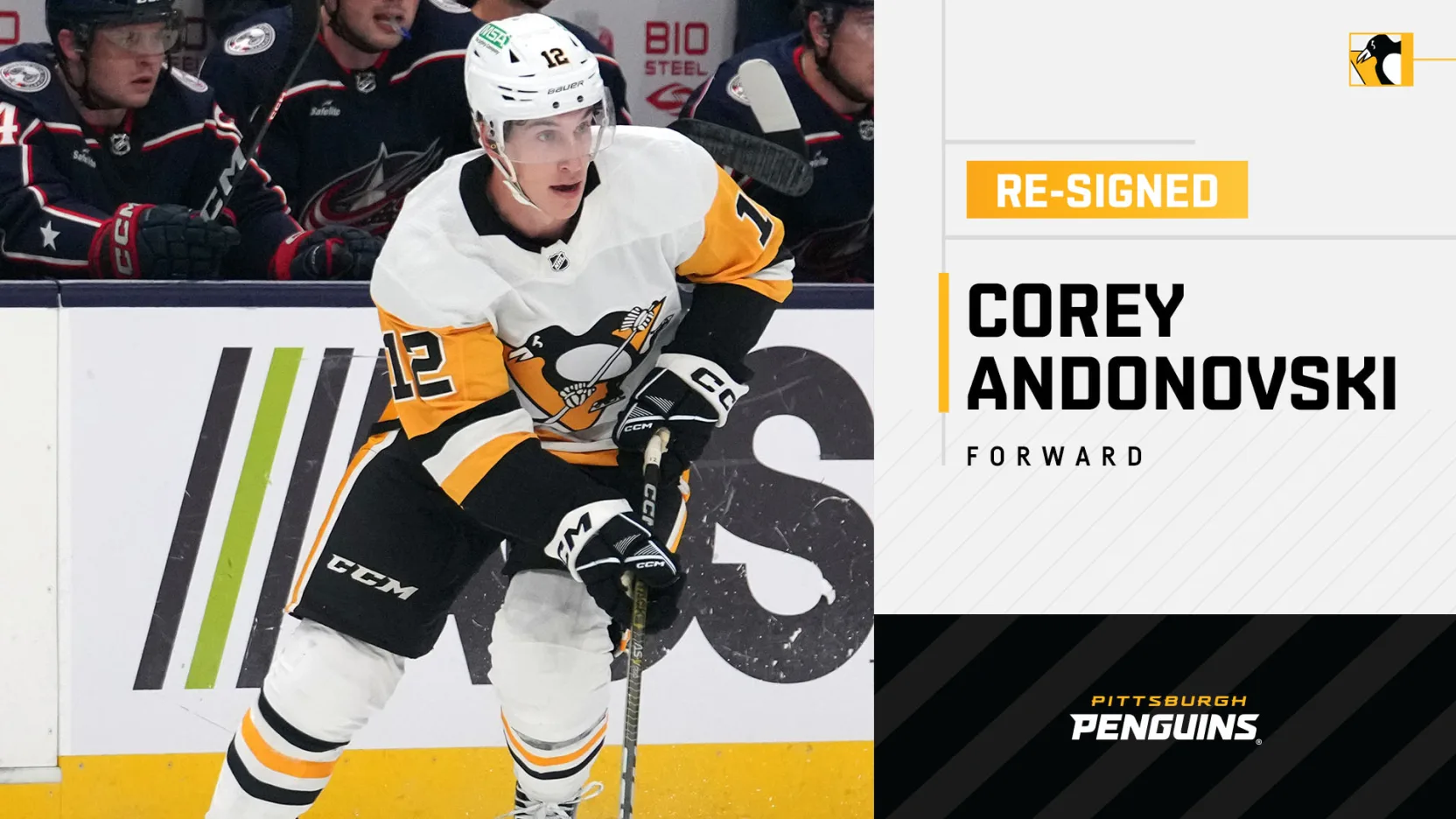 The Pittsburgh Penguins have re-signed forward Corey Andonovski to a one-year contract, it was announced today by President of Hockey Operations and General Manager Kyle Dubas.
